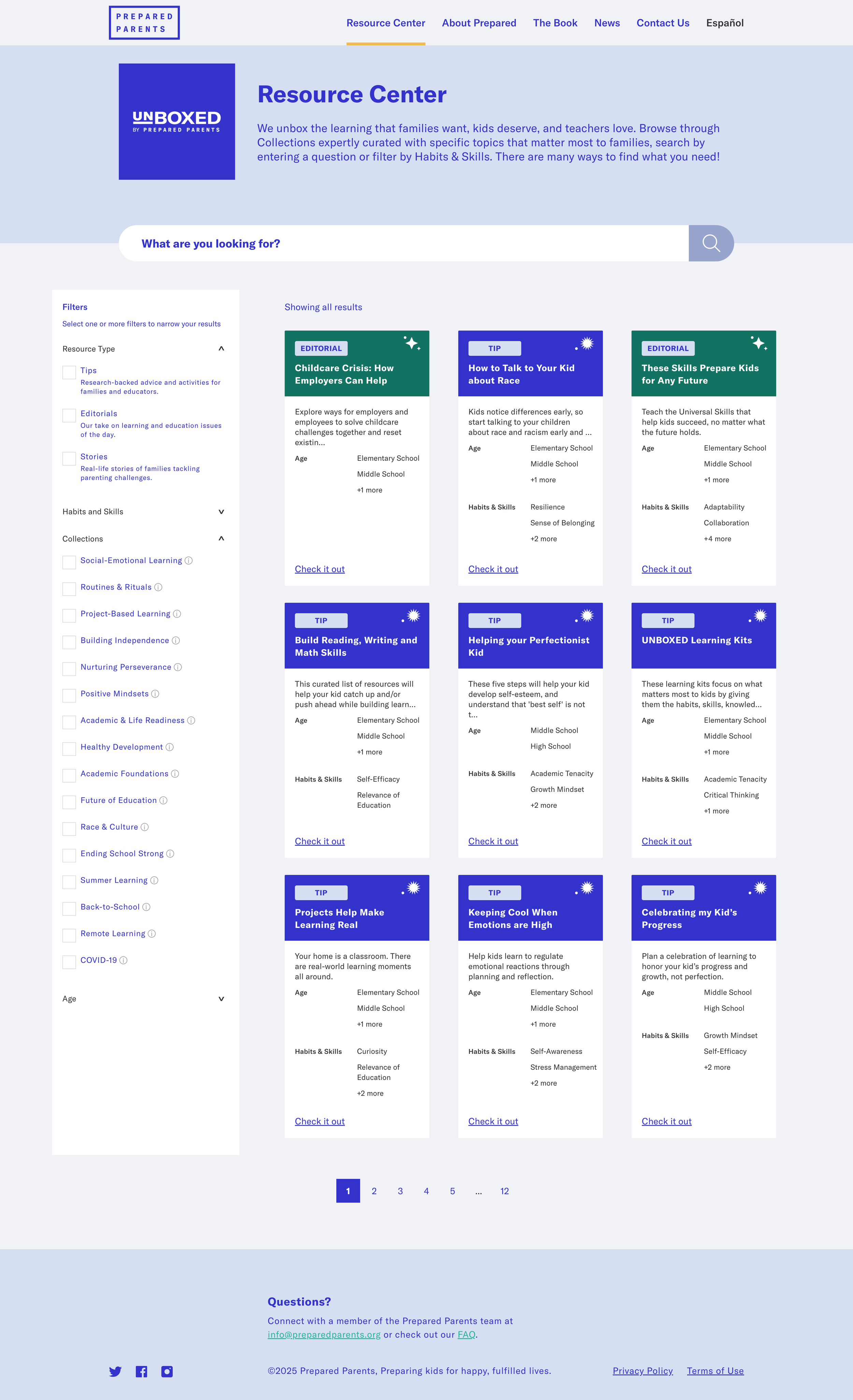 Nonbinary Coding merged the Prepared Parents “UNBOXED Resource Center” into their primary website, streamlining both the experience for users to find and consume content, and the process for website editors to create, curate, and serve content. We developed a full rebuild of their resource center, and provided technical consulting for the migration and database architecture to support this new system, as well as the implementation of the database, API, and front-end.